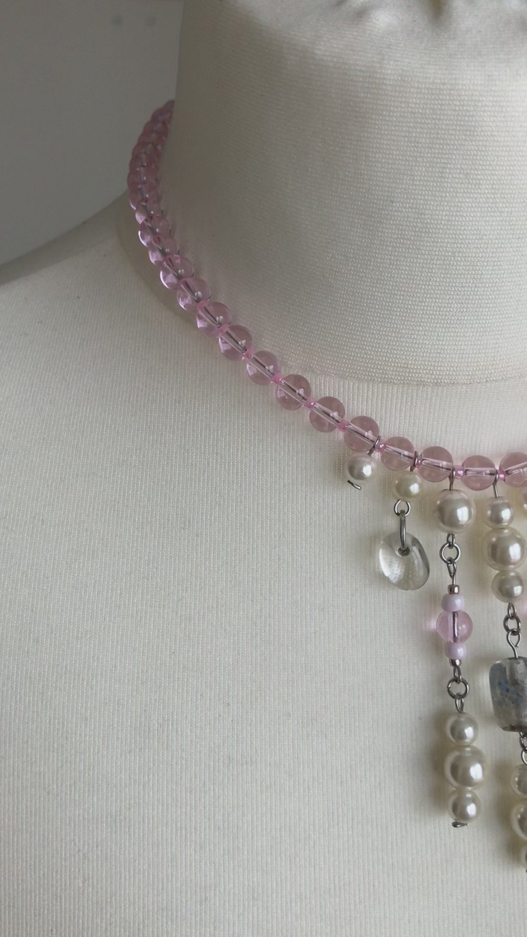 - materials: agate, glass, up-cycled faux pearls, stainless steel